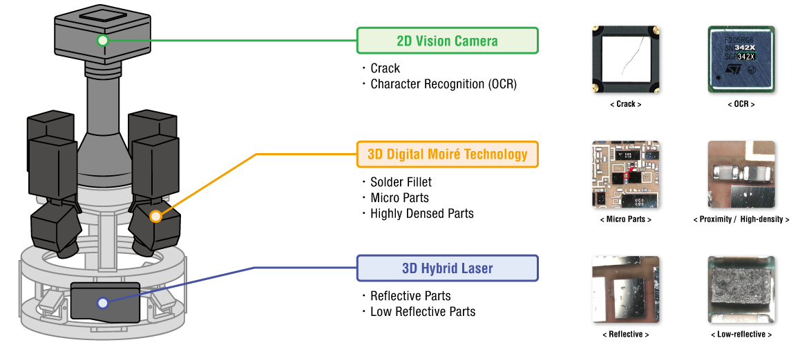 MIRTEC hat ein Vision-System der nächsten Generation implementiert, das mit 7,7μm-hochauflösenden Objektiven eine höhere Präzision und Stabilität bei der Inspektion gewährleistet.