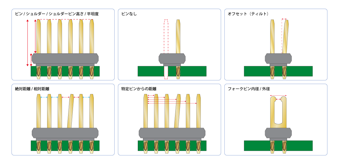 形や長さを問わず、ピンは自動車電装製品によく適用される部品です。しかし、ピンは薄い金属なので、普通の3DAOIは検査が難航します。