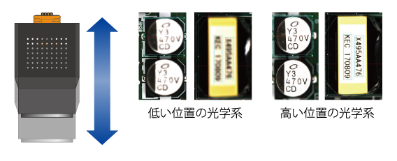 光学系にZ軸駆動系を装着することで、高い部品上面の文字を読み込んで認識し検査することができます。